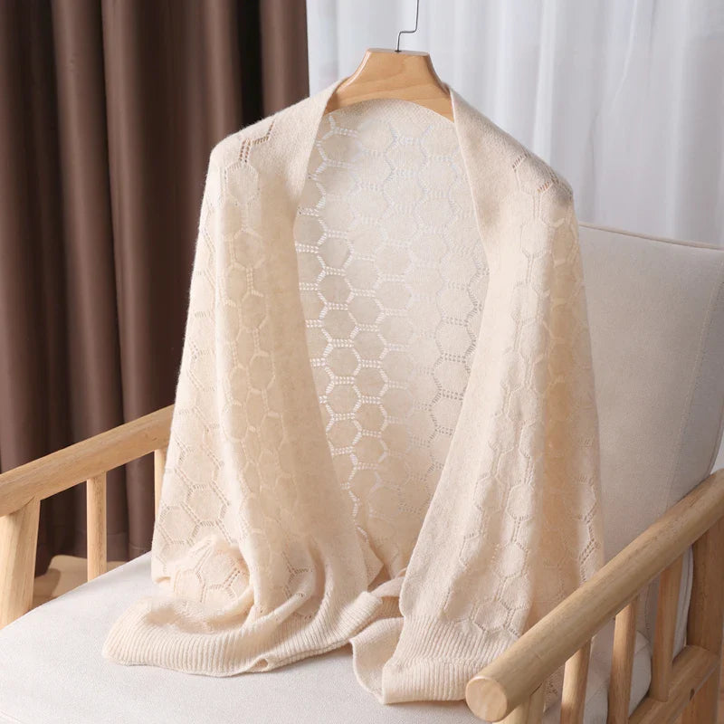 Crafted from premium pashmina, this shawl delivers a buttery-soft touch with an elegant drape. The delicate honeycomb knit design adds texture and charm, making it a versatile layer for both casual and refined looks. Lightweight yet cozy, it’s a timeless addition to your wardrobe.